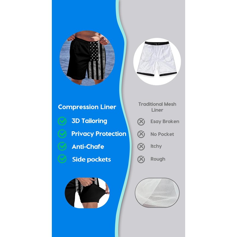- 2. Built-in Compression Liner: These swim trunks feature a compression liner that provides added support and coverage, making them perfect for activities like swimming, surfing, and beach volleyball.