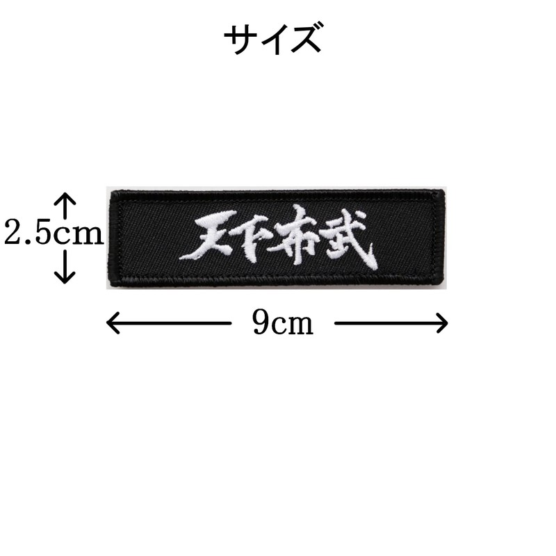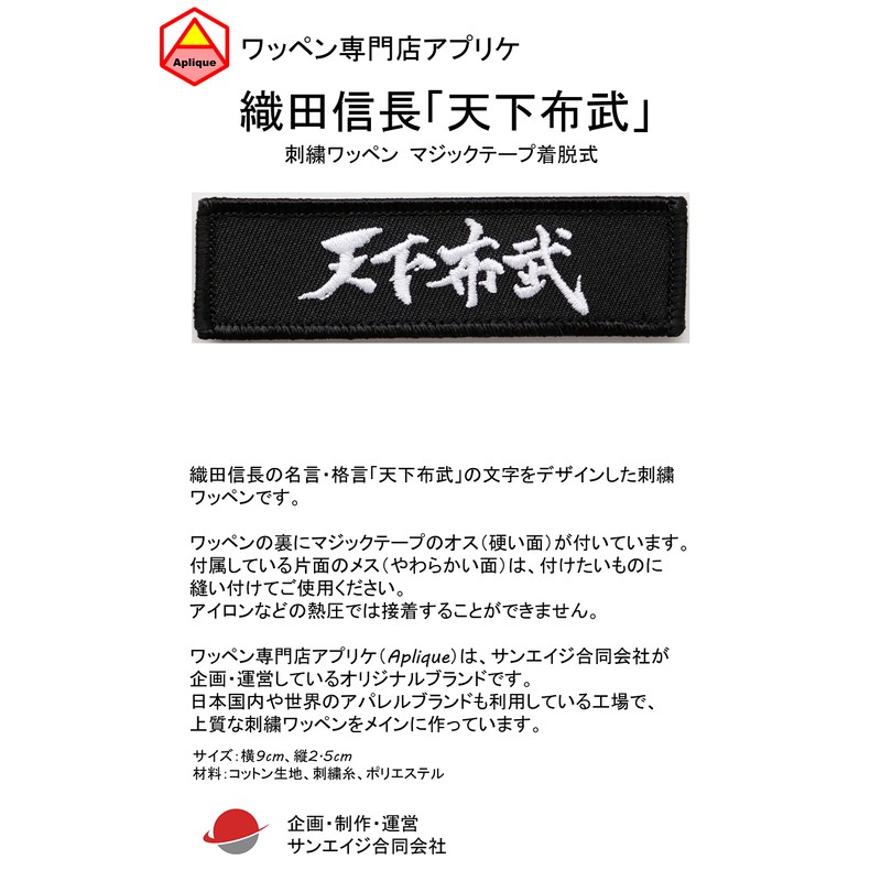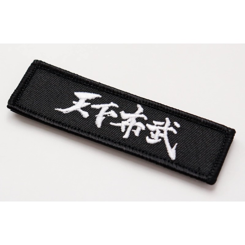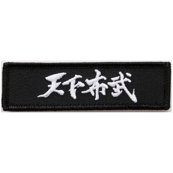 - An embroidered patch designed with the words of Nobunaga Oda's quote, "Tenshitsu" Size (W x H): 3.5 x 1.0 inches (9 x 2