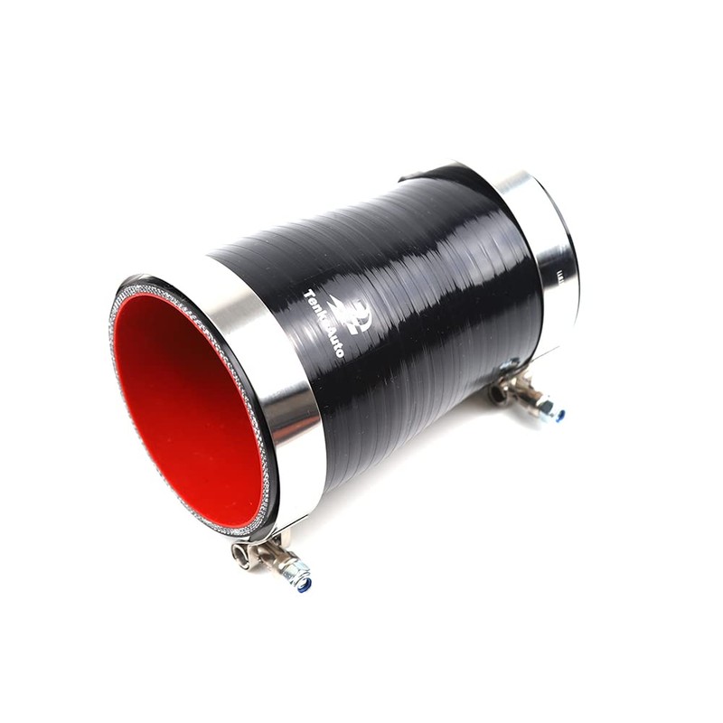 TenKe - Acoplador de manguera de silicona con reductor recto de silicona reforzado de 4 capas de alto rendimiento de 6 pulgadas de longitud con abrazadera de tornillo SS T (negro, 3.5 a 3.7 pulgadas)