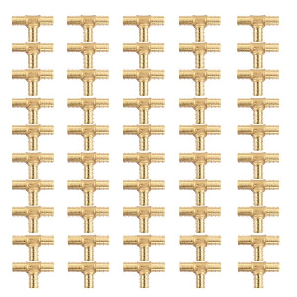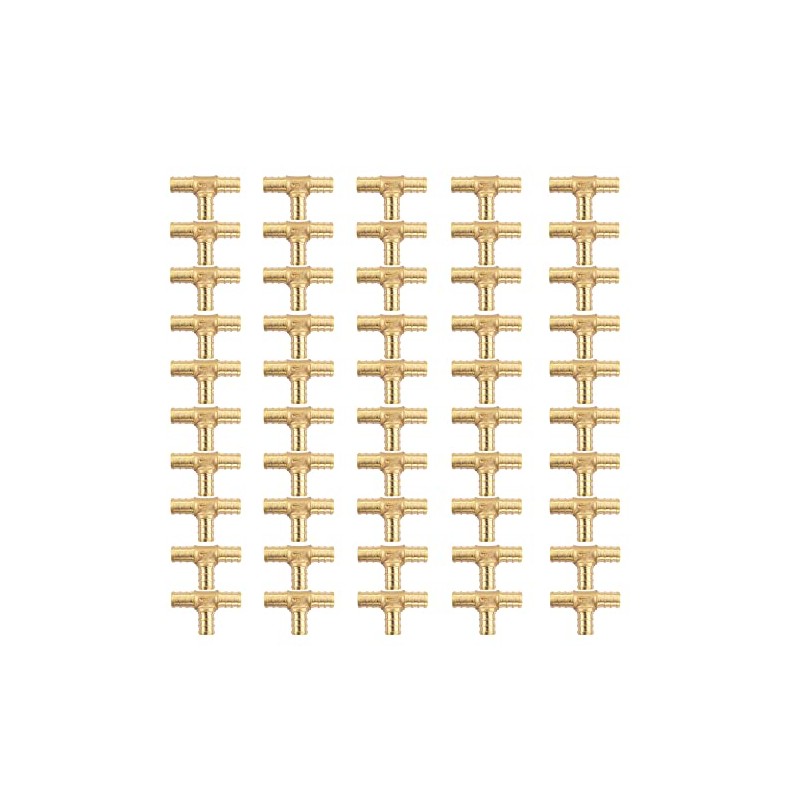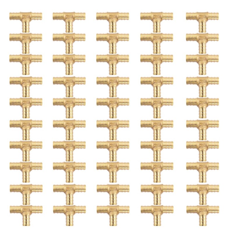 TenkeAuto 50 Pack 3/4" Tee PEX Fittings Brass Crimp for PEX Tubing Pipe (50pcs 3/4" TEE)
