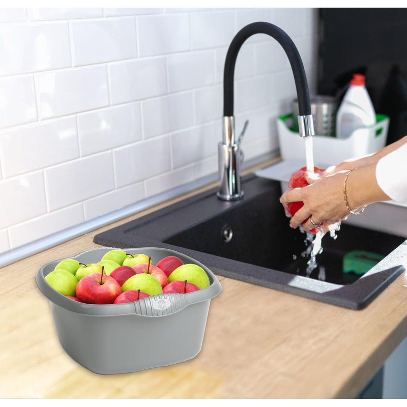 TENLITE High Grade Plastic 32cm Square Washing up Bowl Mixing Bowl Sink Tidy Organizer Plastic Bowl - Silver