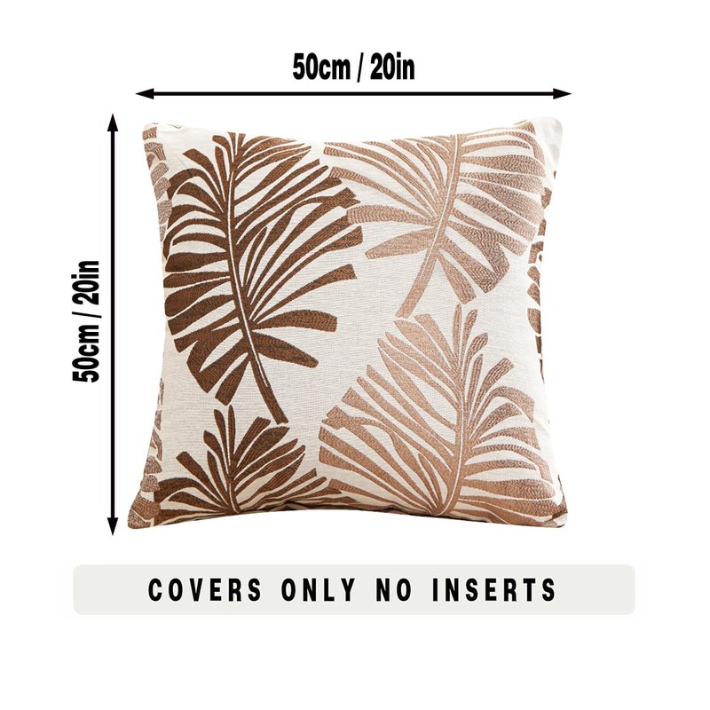 Tennove Cushion Covers 50x50cm Cotton Linen & Velvet Soft Throw Pillow Covers Set of 2 Decorative Tropic Leaf Pattern Square Cushion Cases Pillowcases for Couch Sofa Home Décor, Brown