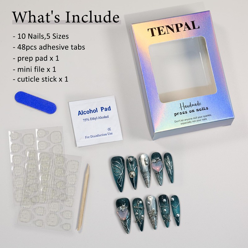 - [Why choose TENPAL?]: Our brand uses imported nail gel to make High-Grade handmade press on nails. it is different from the ordinary and simple styles on the market. TENPAL press on nails, craftsmanship and nails details are unique.Reusable Fake Nails – Switch 100+ Designs in 2 Mins! Salon-Perfect Gel Look Without UV Light, Drying Time, or Chipping. Perfect for Weddings, Parties & Daily Glam!"