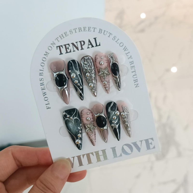 - [Why choose TENPAL?]: Our brand uses imported nail gel to make High-Grade handmade press on nails. it is different from the ordinary and simple styles on the market. TENPAL press on nails, craftsmanship and nails details are unique.Reusable Fake Nails – Switch 100+ Designs in 2 Mins! Salon-Perfect Gel Look Without UV Light, Drying Time, or Chipping. Perfect for Weddings, Parties & Daily Glam!"