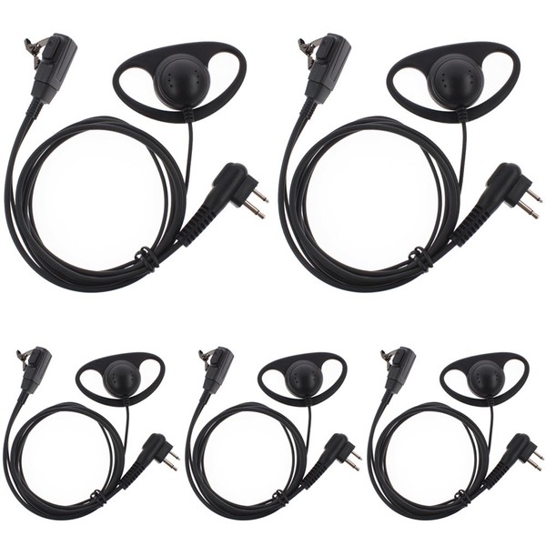 TENQ D Shape Earpiece Headset PTT for Motorola Two Way Radio Walkie Talkie 2pin(5 Packs)
