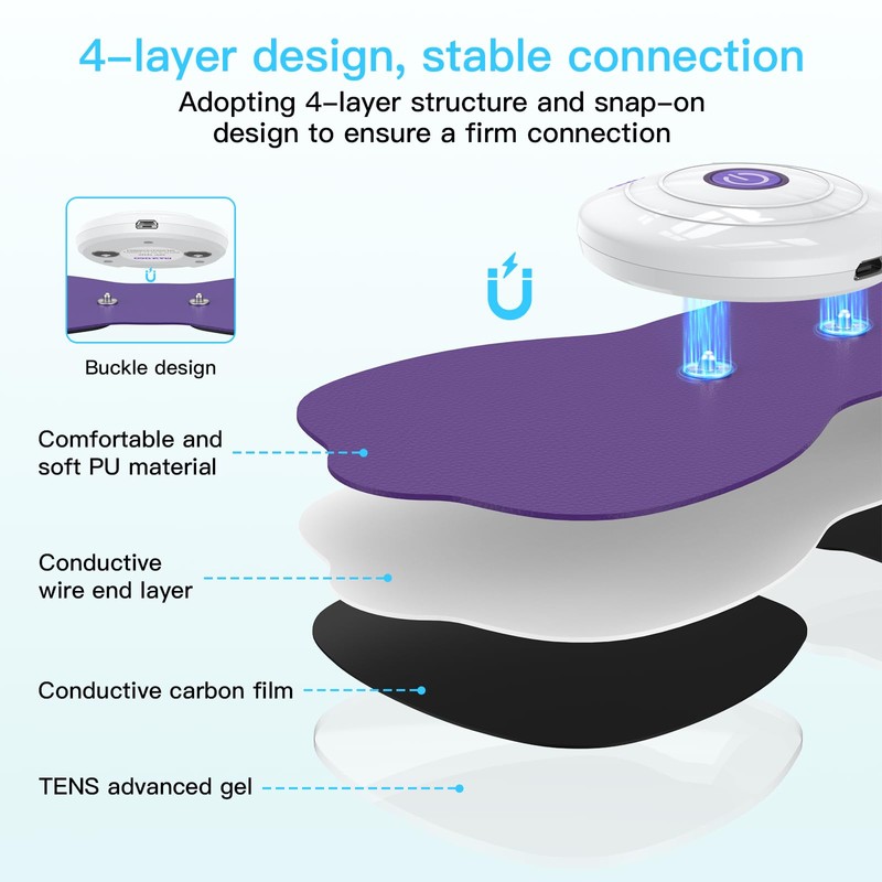 Tens Unit Wireless Electrode Pads, MASTOGO Replacement Electrode Pads with Standard 3.5mm Snap-on Connectors (4PCS/Set) (Purple)