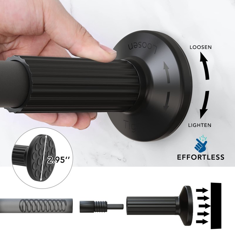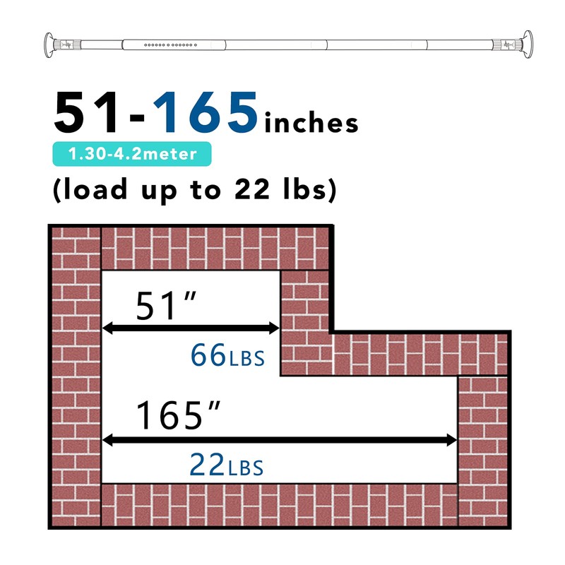 - 【Never Rust & Constant Tension】Shower curtain rod offers rust and corrosion resistance .In addition,there's no slipping with this tension rod and it's gentle on walls. It offers a long-lasting, sturdy hold and a max load of up to 66 lbs. It is recommended that the spring rod not be pulled to its maximum length, and that light to medium weight curtains should be used.