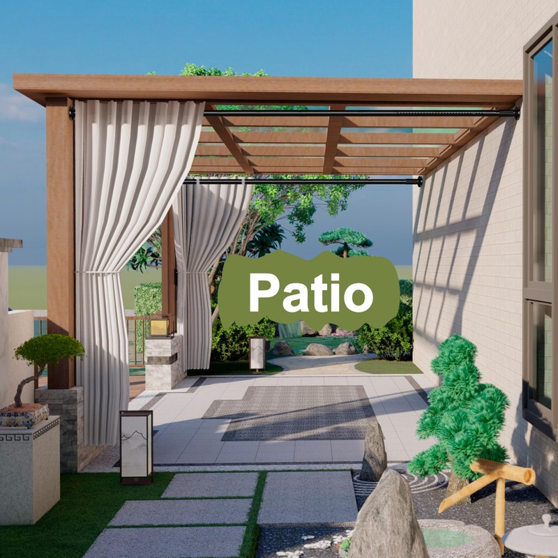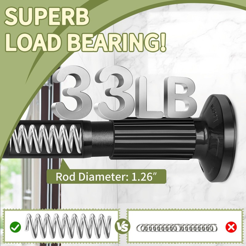 Tension Curtain Rod 51-165In(4.25-13.75Ft), Extra Long Outdoor Curtain Rod No Drilling for Window or Bathroom Patio, Adjustable Spring Shower Rod, Easy to Install Never Rust, Rod Diameter 1.26In-Black