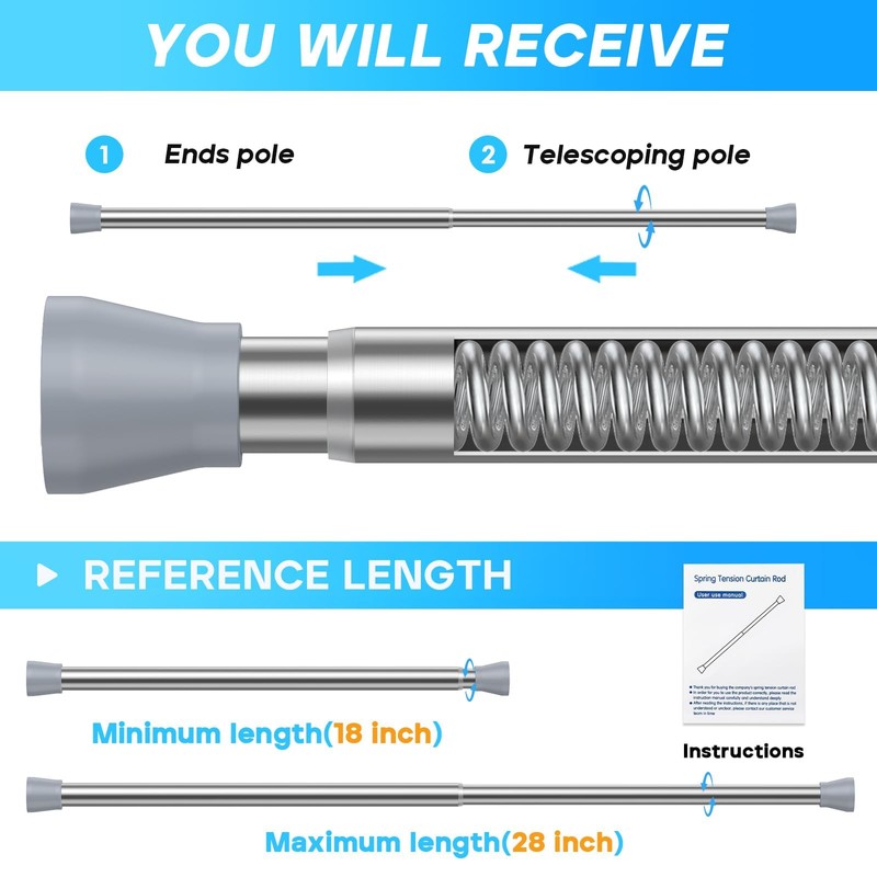 - 【Durable and Built to Last】 The spring curtain rod is made from high-quality materials that will withstand frequent use without fraying or bending.