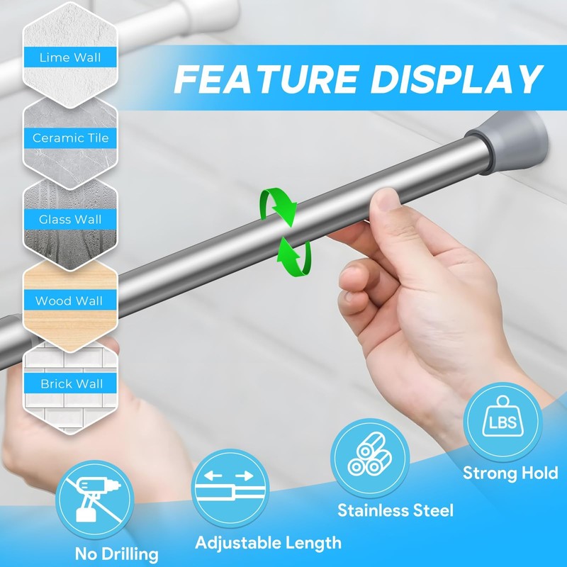 - 【Multipurpose Use】 Whether as a short tension rod, a divider for room separation, or a hanging rod for clothes, this versatile tension rod is a valuable addition to your home organization tools.
