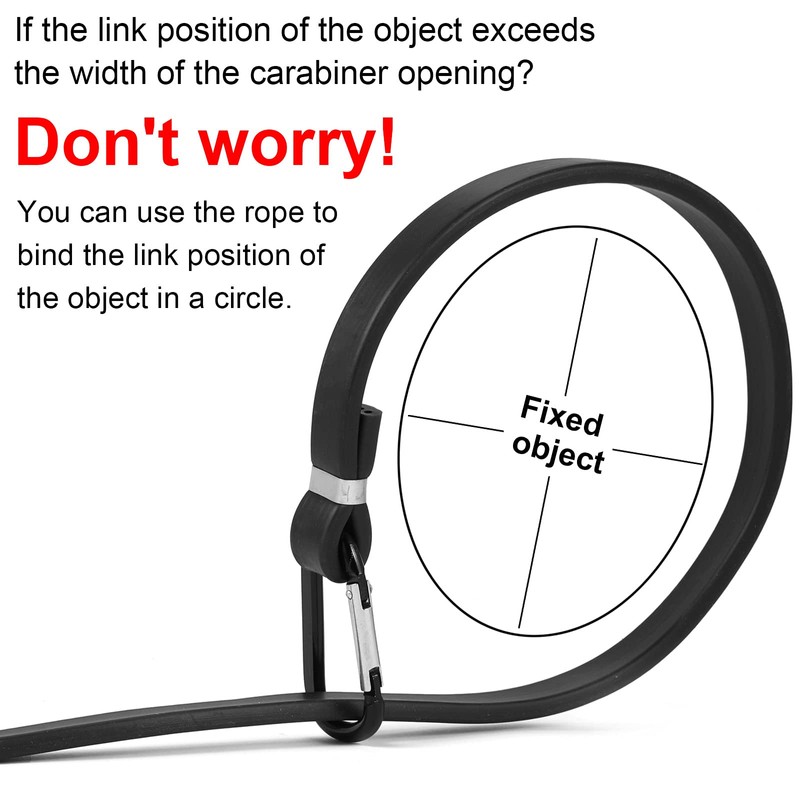 - Carabiner hook design: Each end of the rope has a durable, rust-proof aluminium alloy hook to prevent items from falling off easily. Secure attachment is guaranteed.