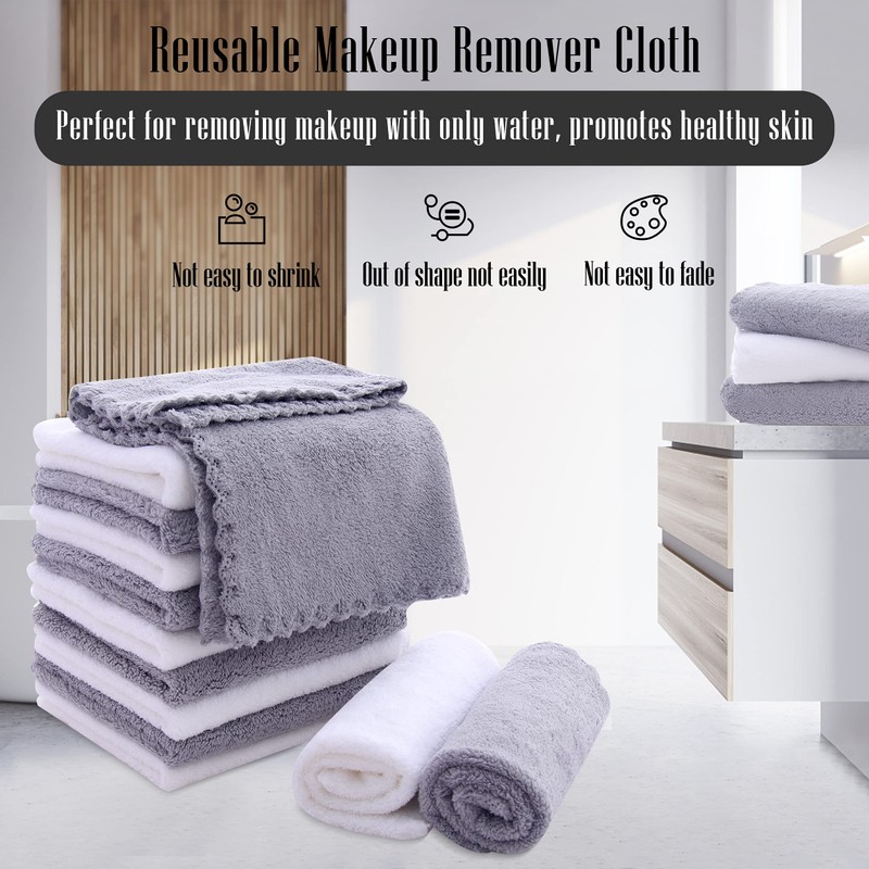 TENSTARS 12 Pack Premium Washcloths Set - Quick Drying- Soft Microfiber Coral Velvet Highly Absorbent Wash Clothes - Multipurpose Use as Bath, Spa, Facial, Fingertip Towel (Grey and White)