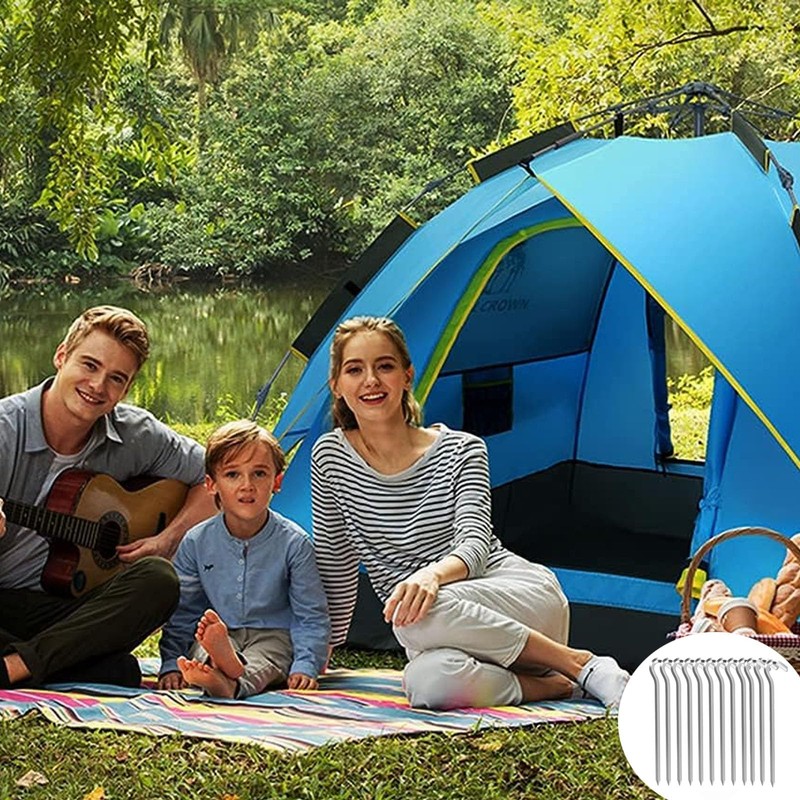 - COMPREHENSIVE SET: Package includes 12 silver-coloured tent stakes, ideal for camping, hiking, travelling, beach activities and outdoor events