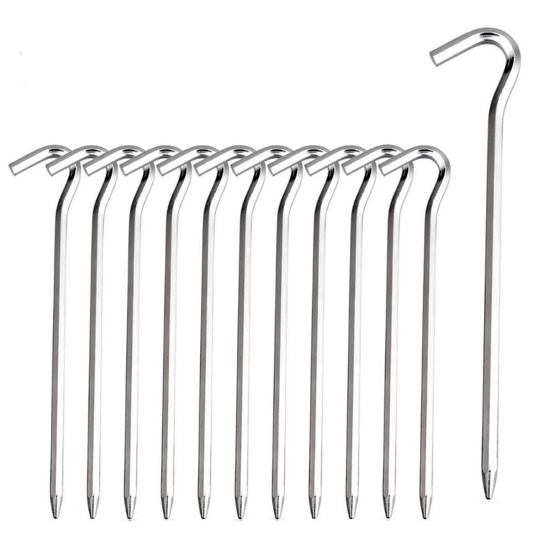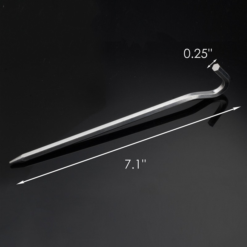 - ✔SHAPE : Tent peg stake is a hexagon rod spike, with a hook on the top end.