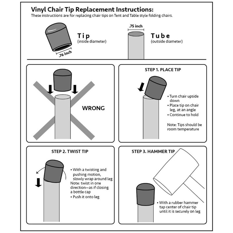 - QUICK INSTALLATION - Simply twist onto the chair leg and tap with a rubber mallet