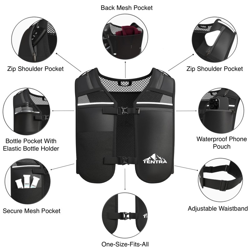 - ENHANCED VISIBILITY - Our TENTRA running vest features reflective elements for enhanced visibility in low-light conditions, ensuring safety during evening or early morning runs.