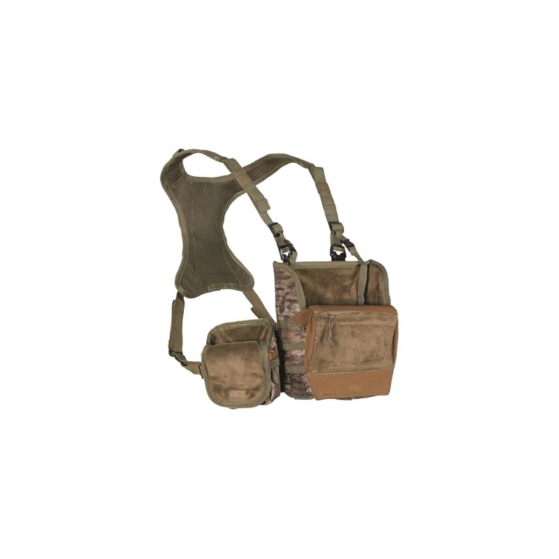 - For storage, the harness features a front zipper pocket, a side stretch pocket, and a large back zippered pocket. The micro fleece lining ensures silent operation, enhancing your stealth in the field.