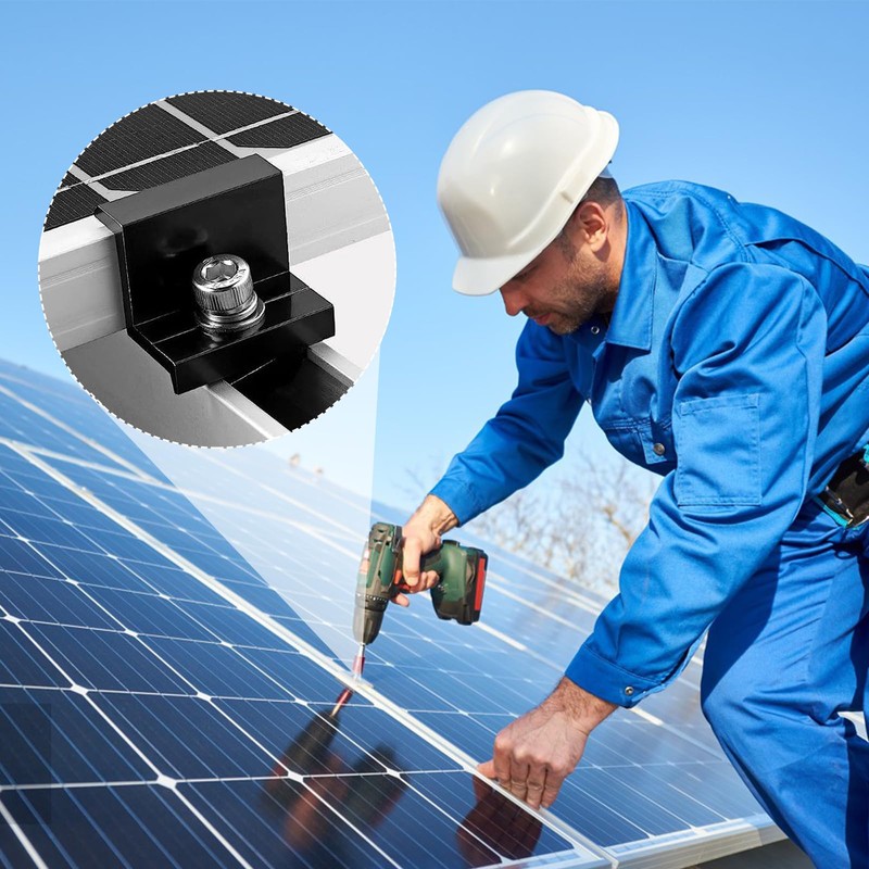 - Box contents: you will receive 12 photovoltaic end clamps, including screw fixings, for quick and reliable mounting of rail or profile system in solar holders. The short assembly time offers you high comfort and cost efficiency.