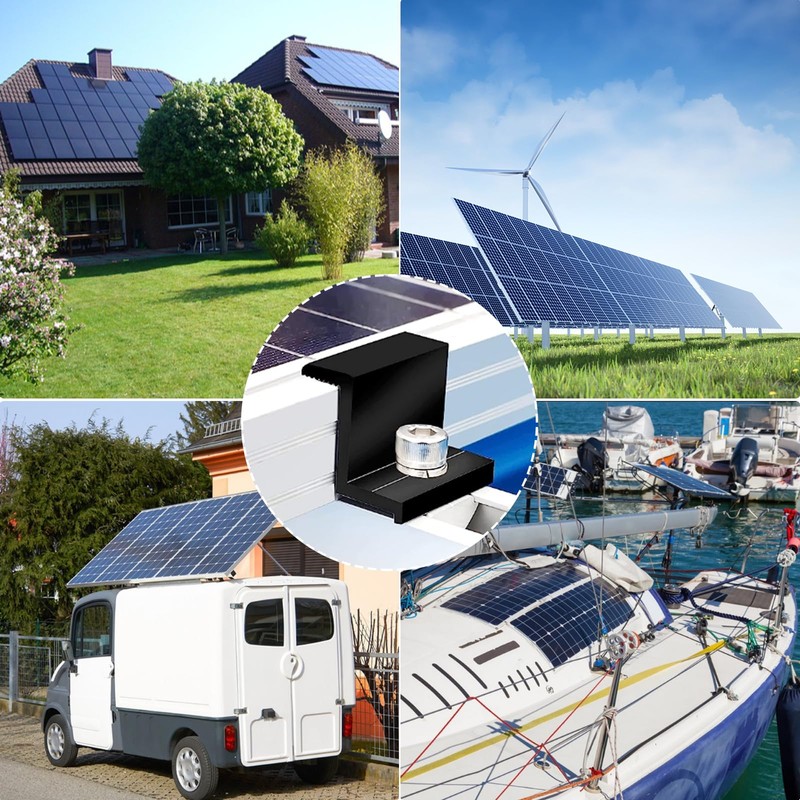 - Applications: the solar panel bracket end clamps is well suited for installing and fixing solar panels on flat roofs of yachts, cars, ships, houses, etc. Ideal for mounting small solar panels is our solar panel bracket.