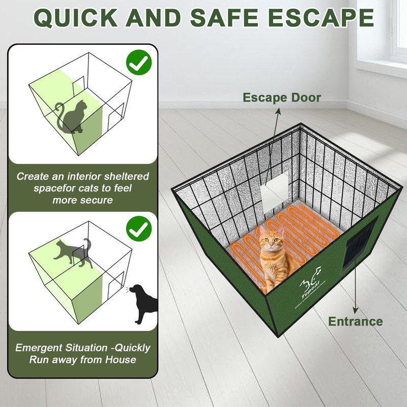 - Indestructible & Quick Escape Door Design - Outdoor cat houses are weatherproof and are highly capable of withstanding harsh weather such as rain, wind, snow and accidental impacts,The Quick escape door allows cats to flee from predators in emergencies while keeping cold air out.