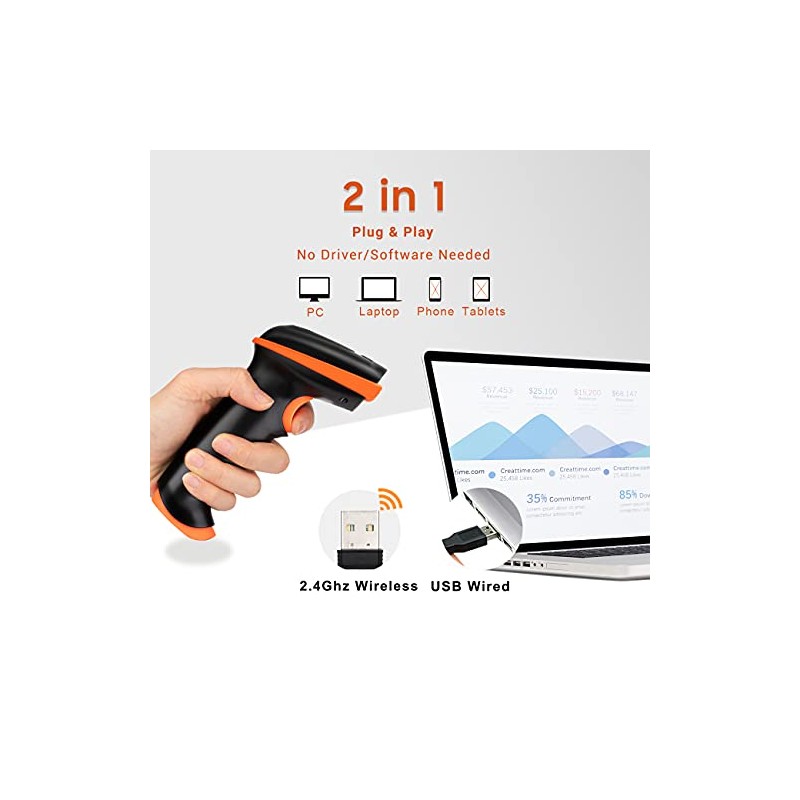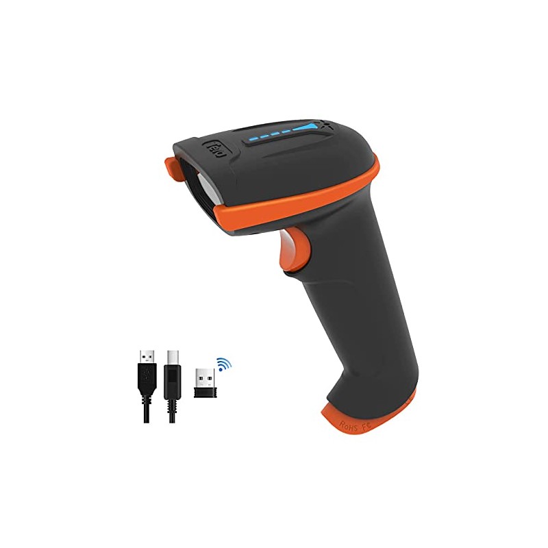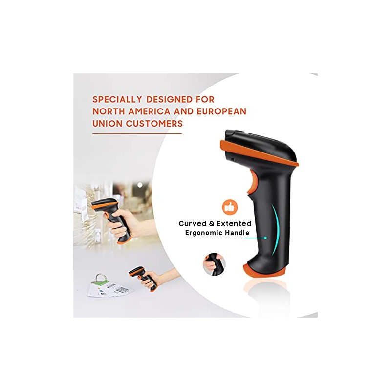 - 【Anti-Shock Silicone】 The orange anti-shock silicone protective cover can avoid scratches and friction while falling from the height of 6.56 feet. IP54 technology protects the wireless barcode scanner from dust.