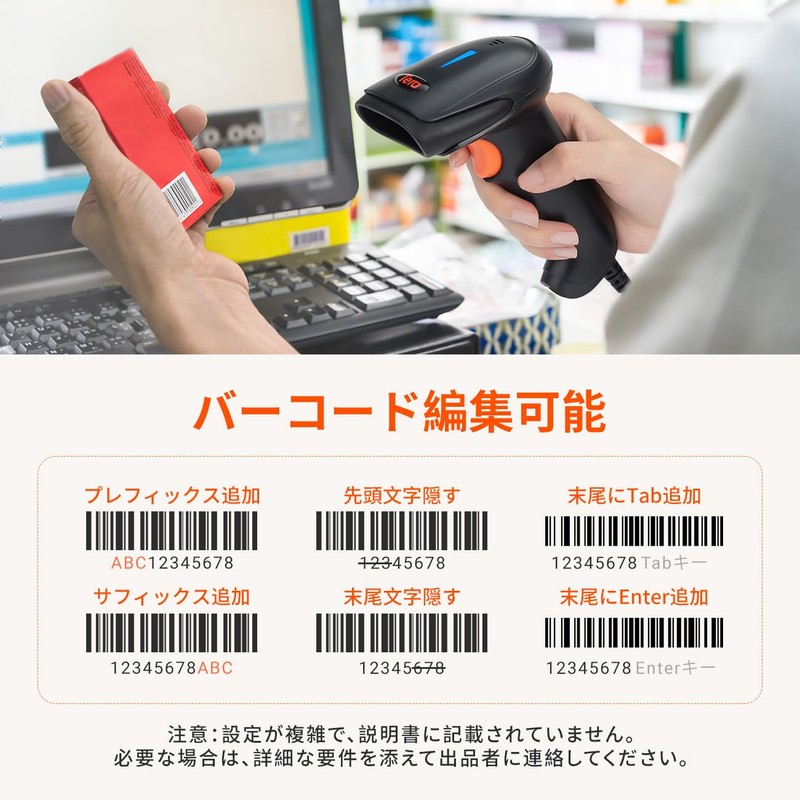 - 【Barcode Editing Function】----You can add additives or suffix or hide letters You can also set the terminator of the barcode. You can add the ENTER key to the end of the numeric column or change it to the TAB key etc