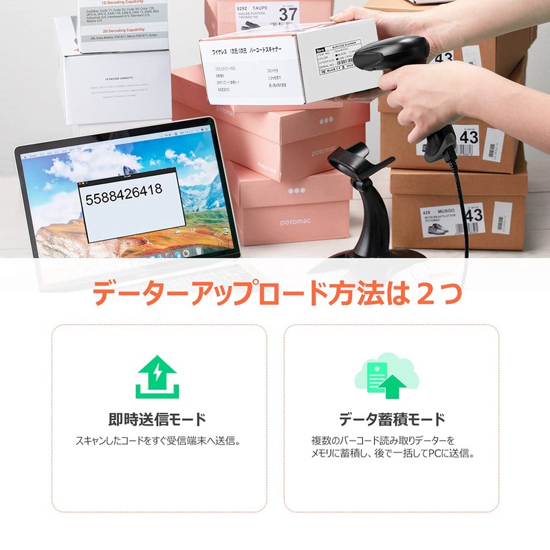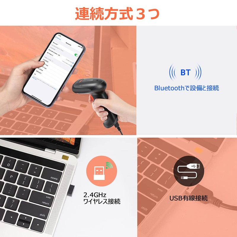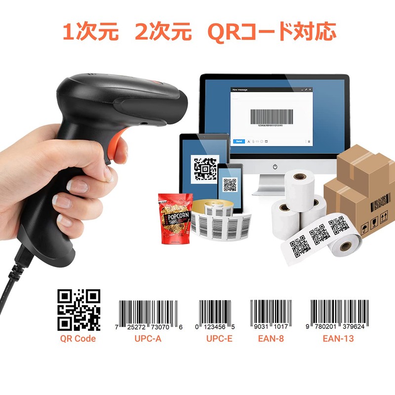 • [Uses CMOS technology] ^&^[Vibration Function] - Not only can it be used to read 1D barcodes, but also 2D QR codes. You can also read barcodes displayed on smartphones, tablets and PC screens, and even damaged barcodes such as scuffs and dirt printed on labels. (Equipped with Vibration Function) Even if the buzzer sound is turned off in the office or library, it can be read and confirmed by vibrations even in places where noise cannot be seen by factories, etc