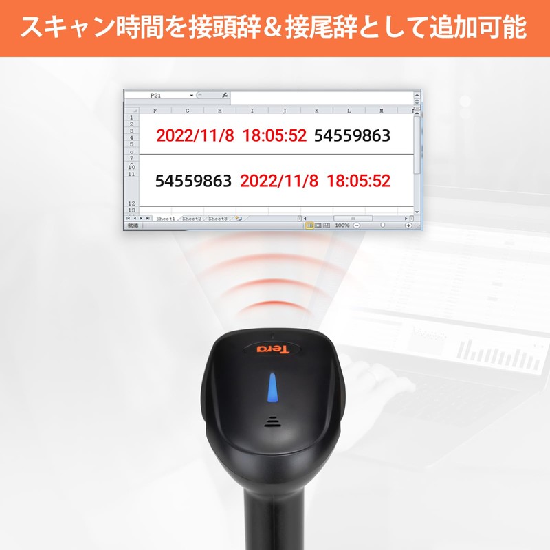 Tera HW0002 Wireless Barcode Reader, Compatible with Both Wired and Wireless, 1-Dimensional, 2-Dimensional, QR Code, USB 2.4 GHz, Bluetooth Compatible, LCD Display Barcode Reading, Technical Compliance, Stand, Hands-free, Handheld, Japanese Instruction M