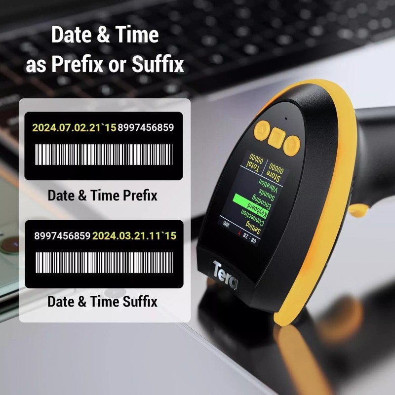 - 【Unique Designed Screen Setting】Tera HW0009-Z barcode scanner allows you to customize the screen displays. With this innovative feature, you can easily set the language, adjust volume settings, select connection options, and more. Experience unparalleled convenience and flexibility as you personalize the settings of your Tera barcode reader to suit your specific needs. 【Package Includes: Barcode Scanner x1, Stand x1, Charging Cable x1, Dongle x1, User Manual x1】