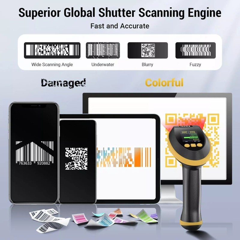 - 【Handsfree Stand & 2500mAh Large Battery】Featuring a handy barcode scanner stand, our design allows for hands-free scanning, significantly enhancing work efficiency. Moreover, the scanner is equipped with a robust 2500mAh battery, ensuring uninterrupted operation throughout the day without the need for frequent charging.