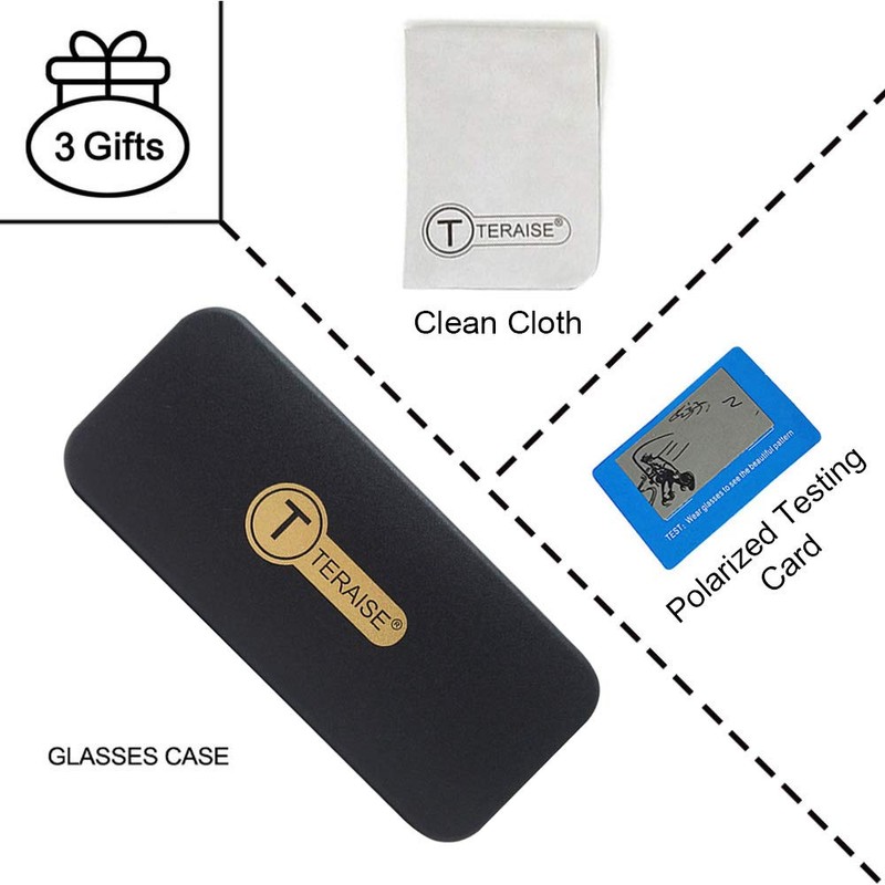 - ★WHAT YOU GET -- 1* Sunglasses clip; 1* Cleaning cloth; 1* Glasses case; 2* Polarized test card.