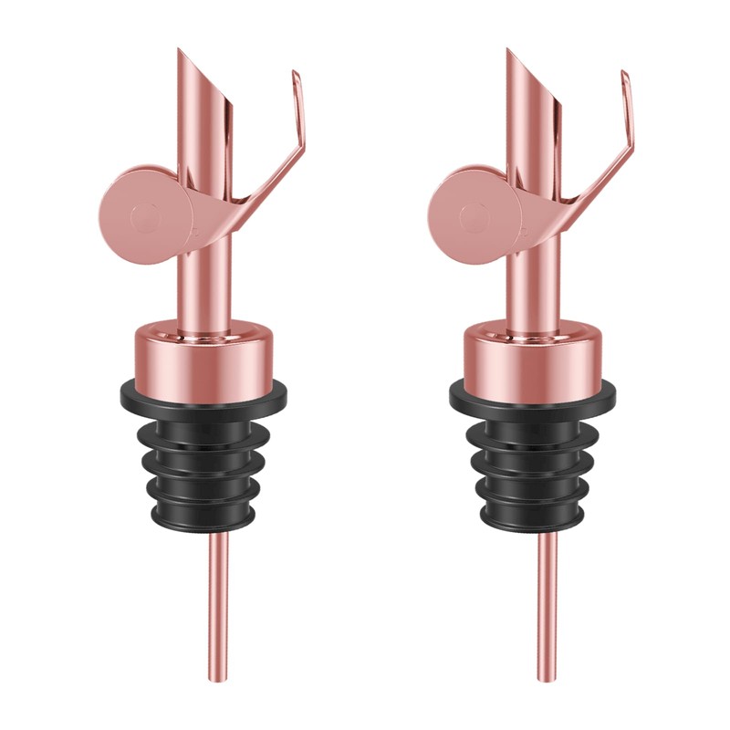TERESRY Olive Oil Dispenser Spout, Weighted Liquor Pour Spout, Dispenser Spout, Stainless Steel Automatic Pour Spouts for Liquor Bottles, Oil Bottles, Vinegar, Syrup and Alcohol 2 Pack Rose Golden