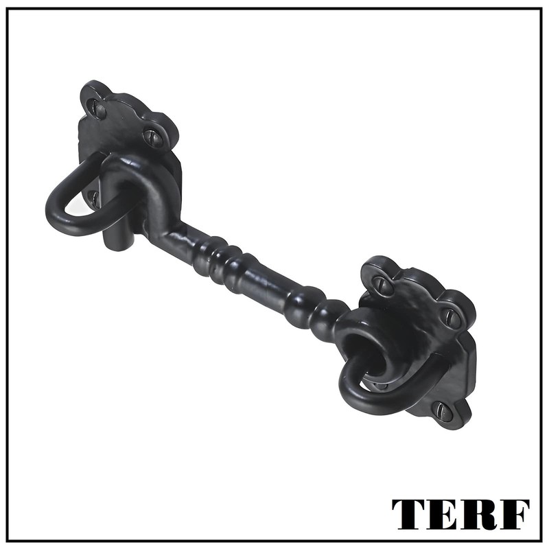 TERF 100mm Heavy Duty Antique Black Cabin Door Hook and Eye Lock Catch 100mm (4 inch) Cabinet Latch including Fixing Screw For Door Gate Window Closet Shed Latch - Pack of 2