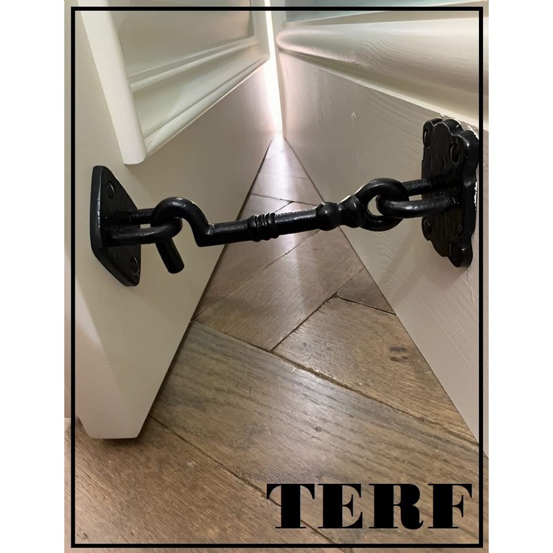 TERF® 100mm Heavy Duty Antique Black Cabin Door Hook and Eye Lock 100mm (4 inch) Cabinet Latch Catch including Fixing Screw For Door Gate Window Closet Shed Latch - Pack of 2