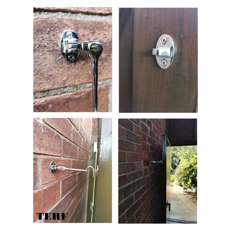 - Wide Application: The Cabin Eye Latch Hook can be used for locking windows, shutters, barns, sliding and double doors, gates, garage and shed doors. The hook latch also can be used as a door or window stopper