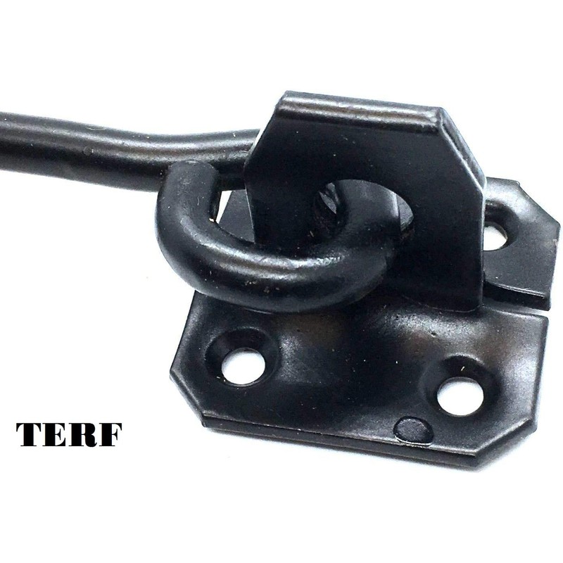 TERF® 200mm Heavy Duty Antique Black Wire Cabin Door Hook and Eye Lock 200mm (8 inch) Cabinet Latch Catch including Fixing Screw For Door Gate Window Closet Shed Latch - Pack of 1