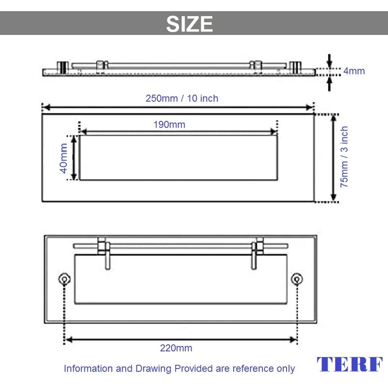 TERF® 250mm X 75mm Traditional Type Letter Plate Polished Chrome 250mm X 75mm (10'' X 3'') Letter Postal Box Cover Plate Including Fixing Screw