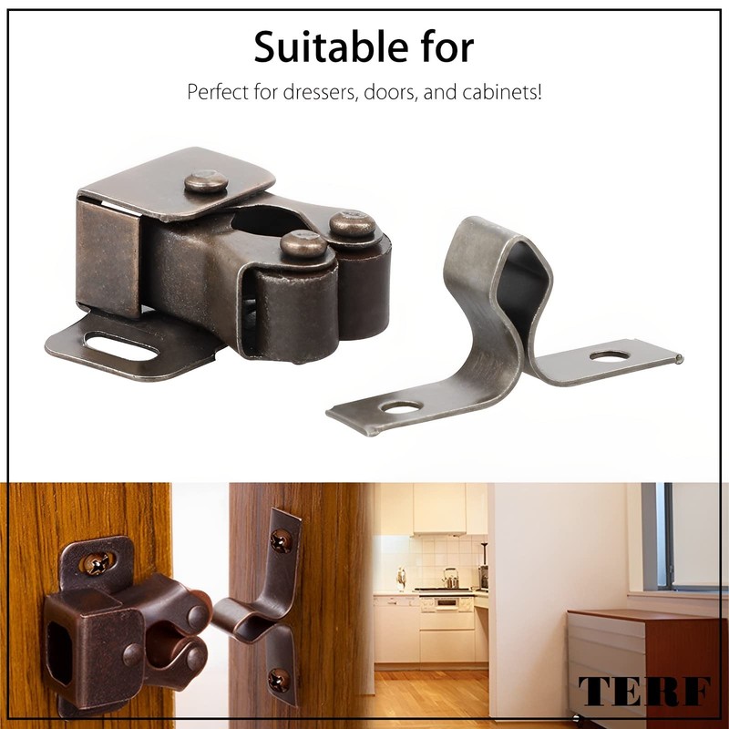 - Durable Material : Cabinet catches made of high quality Bronze Plated steel with Nylon double roller design, can withstand strong pulling force, closing with cushioning effect, rust and corrosion resistant, smooth surface, strong and durable