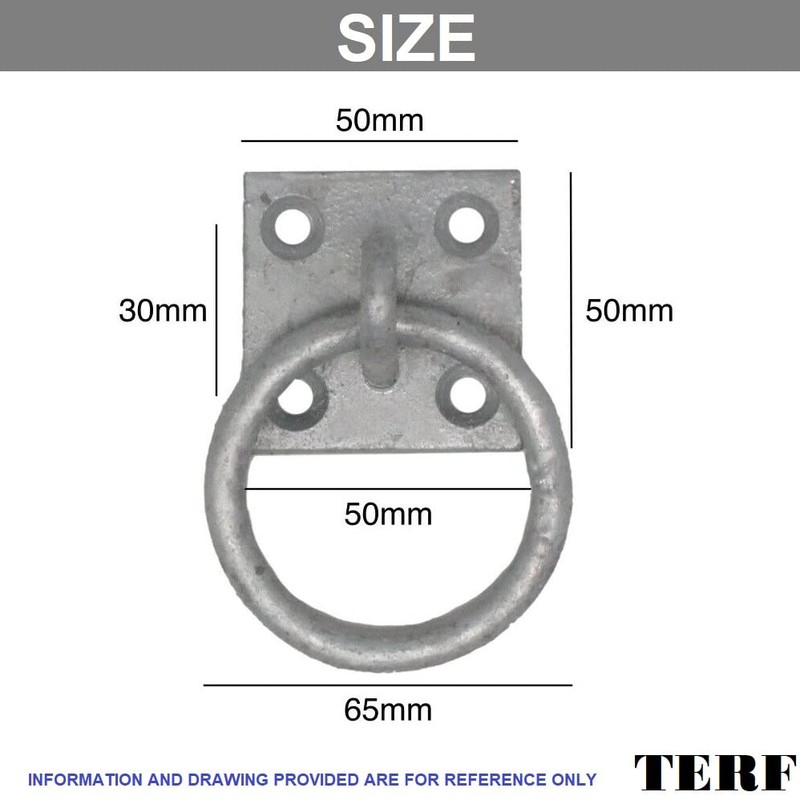 TERF® Heavy Duty Galvanised Security Ring on Plate Hooks 50mm (2 inch) Pad Eye Plate with Hole Ceiling Hook Wall Mount Hook with Screws for Wall Ceiling Hanging and Multi Purpose Use - Pack of 2