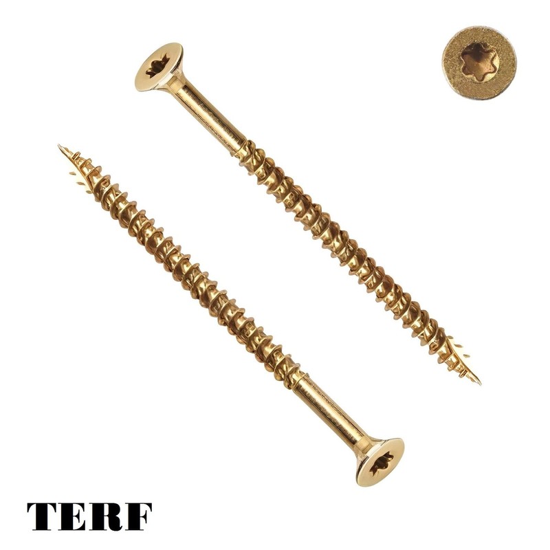 TERF® High Performance Multi Purpose Screw 5.0 X 90mm Torx Drive Flat Countersunk Head Wood Screws 5.0mm X 90mm (No.10 X 3.1/2) For Hardwood Decking MDF Plastic and Sheet Metal - Pack of 50