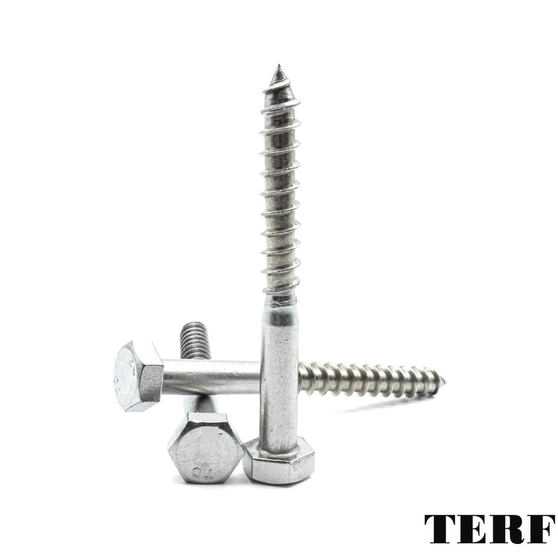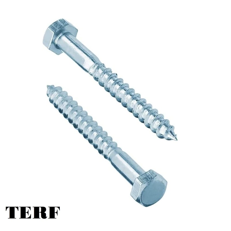 TERF® M12 X 120mm Coach Screws Hex Head M12 (12mm) X 120mm Wood Masonry Brick Concrete Wall Fixing Lag Screw Bolts for Aerial Satellite Dish TV Bracket Fence Shelves Mounting Decking - Pack of 4