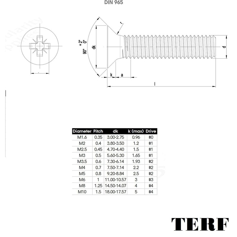 - Pozi Countersunk Machine Screw Size : M4 (4mm) X 25mm