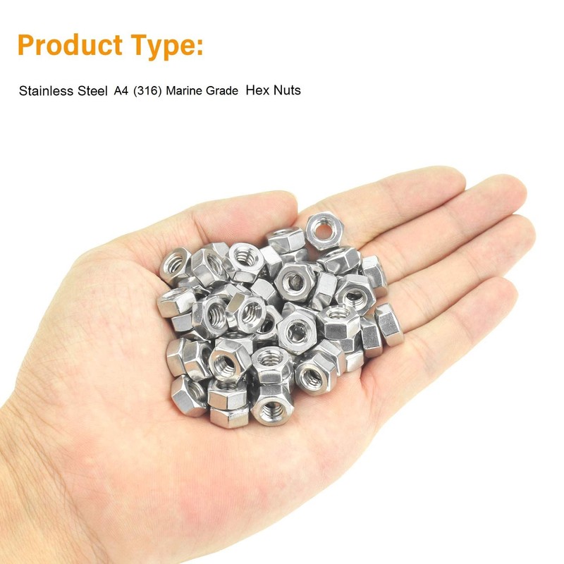 50 Pcs Approx Quantity A4 Grade Stainless Steel (316) Hex Hexagon Full Nut