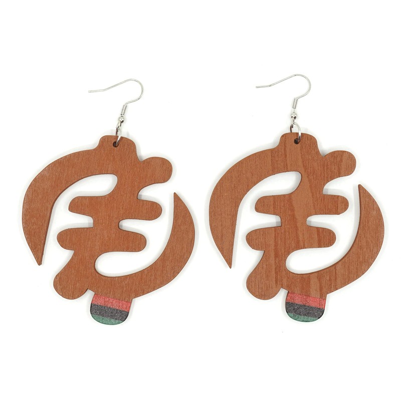 Teri's Boutique Adinkra Symbol Gye Nyame Nothing but God Women Ghana Fashion Big Dangle Earrings (Brown), 2.5 W x 3.5 L (inches)