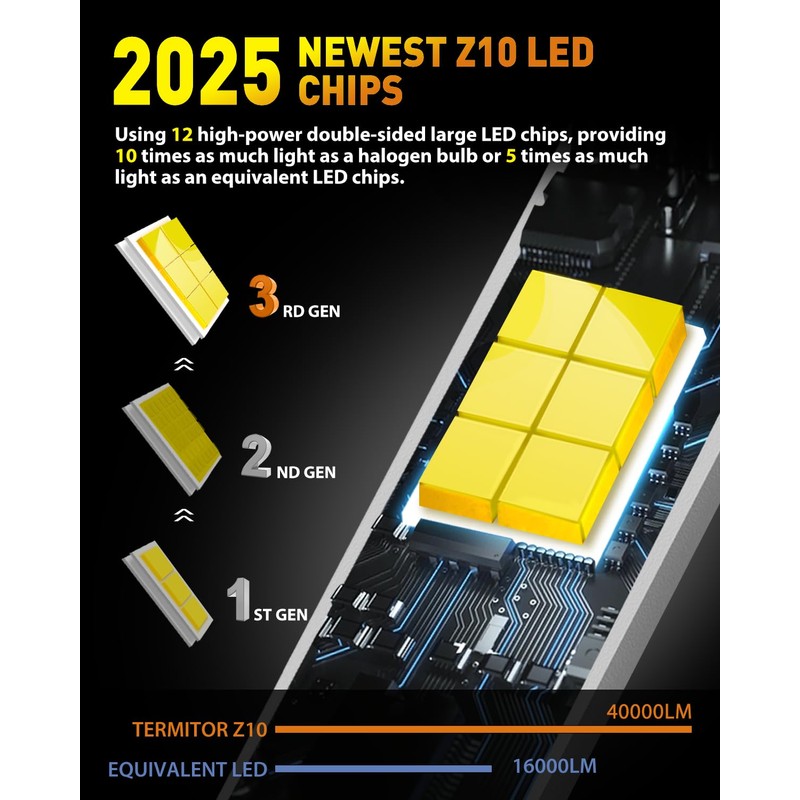 - 【Experience a Blazing 10X Brightness Boost】Enhance your driving journey with our high-power bulbs, boasting 12 advanced chips per light and an astounding 40,000LM brightness per set. Powered by cutting-edge Z10 technology, these lights deliver dependable and efficient illumination, ensuring an optimal nighttime driving experience.