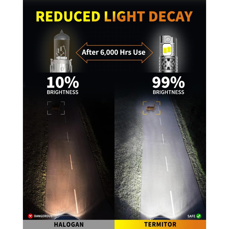 Termitor Termitor H13 9008 Light Bulb, 40,000LM 10X Super Brighter 1:1 Halogen Size, 10-Year Extended Lifespan, 6500K White Fog Light Bulbs with Cooling Fan, Plug and Play, Pack of 2