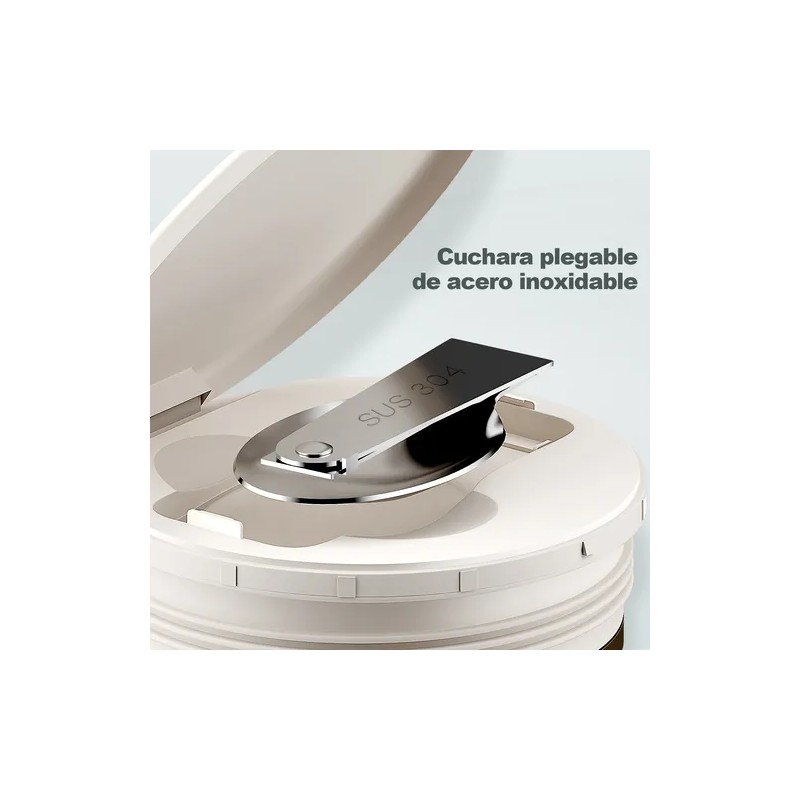 3. Cuchara plegable oculta y base de silicona antideslizante.