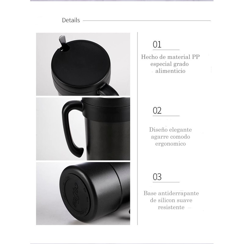 - Capacidad de 550 ml. Acero inoxidable 304 tapa material PP grado alimenticio libre de BPA (No cierra herméticamente)