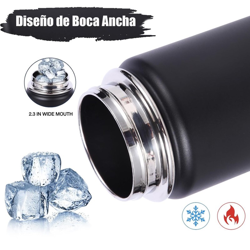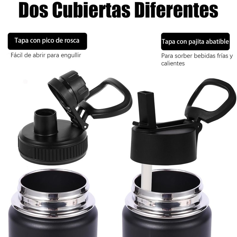 - 【Cubierta de boquilla y cubierta de pajita】Botella Térmica hay 2 cubiertas a prueba de fugas, que se pueden cambiar en cualquier momento: 1 cubierta de pajita abatible, 1 cubierta de boquilla de fácil giro. Todas las tapas son a prueba de fugas, por lo que puedes beber mientras viajas sin derramar ni preocuparte por mojarlo y guardarlo en tu bolso. Su amplia apertura te permite llenarlo de hielo o fruta de forma fácil y rápida.
