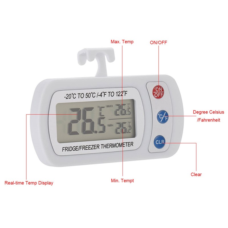 - Cobertura de rango de temperatura extrema: Diseñado específicamente para refrigeradores y congeladores, el termómetro de refrigerador tiene un amplio rango de temperatura de funcionamiento, cubriendo temperaturas extremas de -20 °C a 50 °C (-4 °F a 122 °F), lo que garantiza que pueda Monitoree la temperatura en una variedad de ambientes.